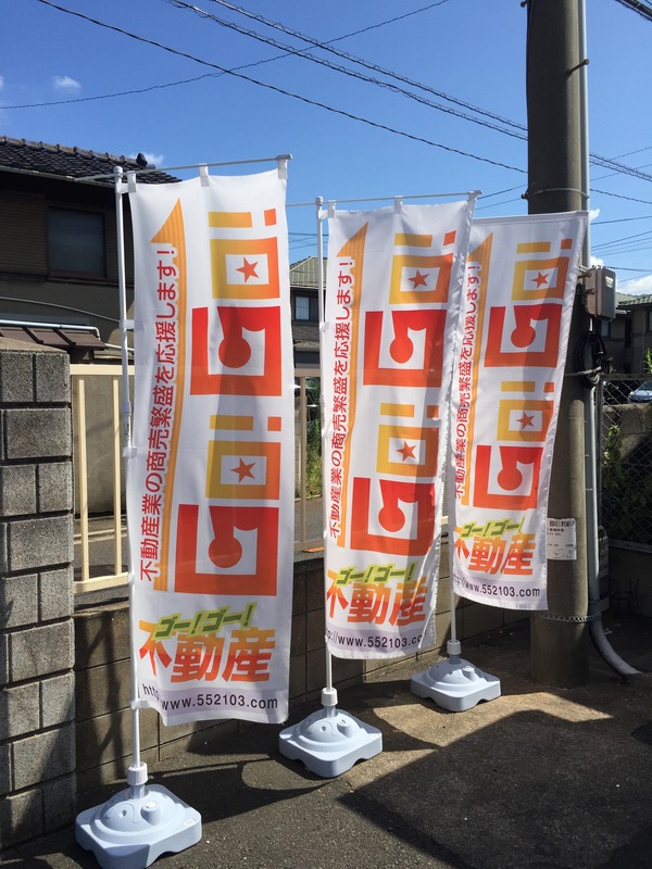 設置から1ヵ月後、風の強い場所に設置したのぼりは巻き上がり防止加工以外、すべて巻き上がっていました。そして、ヒートカットには更なるほつれが。風量などが普通の場所に設置したのぼりは巻き上がりはしなかったものの、ヒートカットのほつれが広がっていました。(注:巻き上がり防止加工には、ほつれ防止加工も施してあります)【まとめ:のぼりを選ぶポイント】・キャンペーン等、短期間の利用時のオススメ→ヒートカット★風の強い場所では巻き上がり防止のL字袋加工を追加・長期間利用時のオススメ→ほつれ防止(L字三巻縫製)★風の強い場所では巻き上がり防止のL字袋加工を追加設置場所に応じて巻き上がり防止(L字袋加工)を追加することがポイントです!せっかく製作したのぼり。より効果的に使用できるようにしたいですね(^^)こんな場所に設置するんだけど、どんな加工方法がいいかな…? と迷われた方は、お気軽にお問合せください!お問合せはこちらGO!GO!不動産を今後とも宜しくお願い致します。