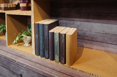 段ボールで作ったとは思えないビンテージ感もあるおしゃれな洋書のダミー家具です。インテリアとしての使用がおすすめです。