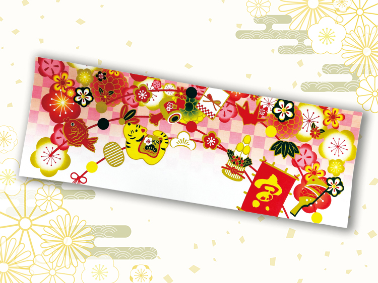 新春の絵柄をあしらった華やかな干支デザインの手ぬぐいです。新年のご挨拶周りはもちろん、現場見学会などのノベルティにも最適です。綿100%で織られた手ぬぐいは、薄く、吸水性が高い上に速乾性も良いので携帯に便利です。日用使いだけでなく、タペストリーとしてもご使用いただけるので、多様性があり喜ばれるギフトでしょう。