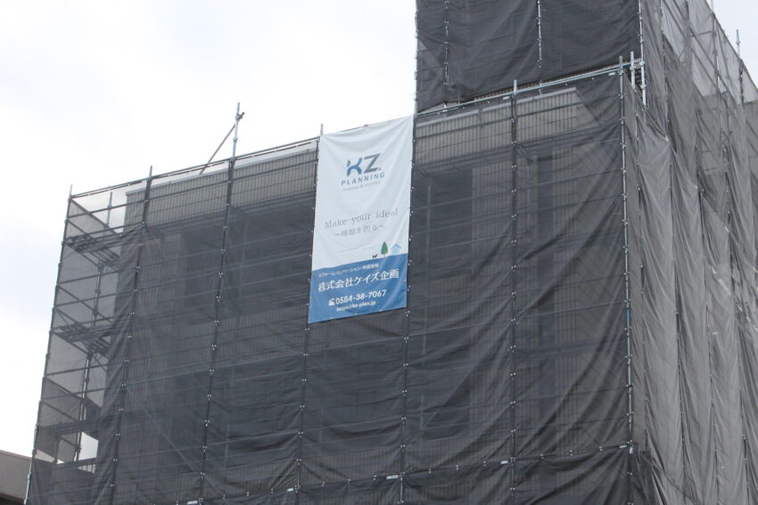 工事中は養生幕が建物に設置されるので、何の店舗なのか分かりづらくなります。