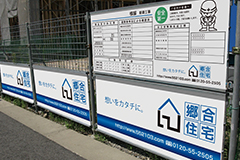 建設現場の仮囲いにプラダンの法定看板とイメージパネル。